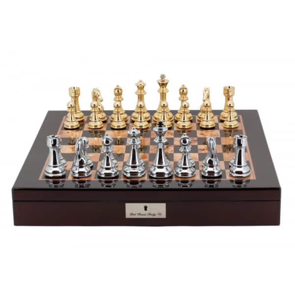 Dal Rossi Italy Chess Box Mahogany Finish 20" with compartments Gold and Silver 101mm pieces