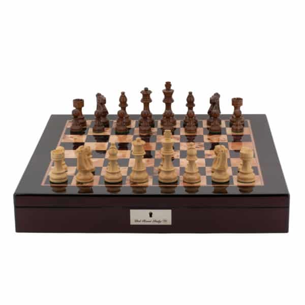Dal Rossi Italy Chess Box Mahogany Finish 20" with compartments with Staunton Wooden 95mm Chess pieces