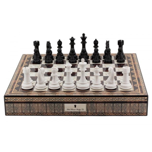 Dal Rossi Italy Chess Box Mosaic Finish 20" with compartments with Black & White Finish 101mm Chess pieces