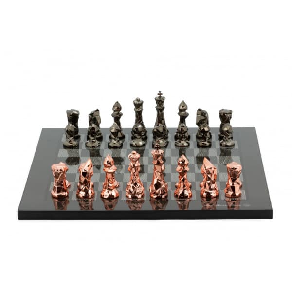 \nWhether you are a seasoned chess enthusiast or a connoisseur of fine craftsmanship, the Dal Rossi Italy Chess Set with Diamond-Cut Copper & Bronze 85mm Chessmen on a Carbon Fibre Shiny Finish Chess Board is a testament to the artistry and dedication of Dal Rossi Italy. Elevate your chess-playing experience to new heights with this exquisite set that seamlessly combines tradition and modernity, making it a centerpiece for both casual games and competitive play.