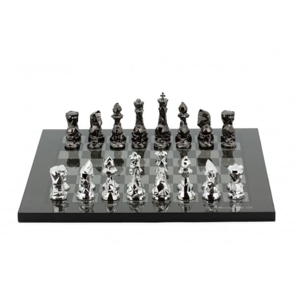 \nThe chessmen, standing at an impressive 85mm height, boast a flawless blend of titanium and silver, elevating the set to a level of opulence. The diamond-cut detailing on each piece reflects light in a dazzling display, capturing the essence of luxury and refinement. Whether you are a seasoned chess enthusiast or a collector of fine game sets, the Dal Rossi Italy Chess Set promises to be a striking centerpiece that combines functionality with aesthetic allure.